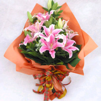 花束8支粉色香水百合+豐富的配葉