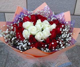 商品簡介:19只紅玫瑰,9只白玫瑰
