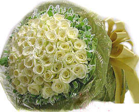 商品簡介:66枝白玫瑰、外圍豐富葉上花