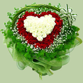 商品簡介:白玫瑰紅玫瑰99支加外圍花籃