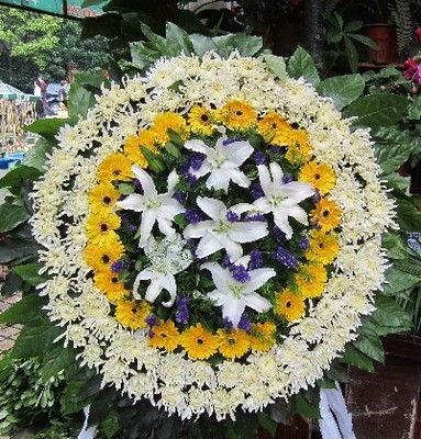 白菊花黃菊花白百合勿忘我搭配哀悼花圈