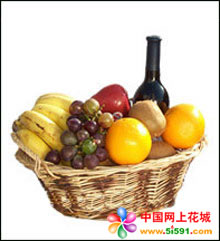 材料包裝: 材 料] 香橙2個,鮮桃2個,葡萄1串,蘋果2個,獼猴桃2個,香蕉1串等時令水果,干紅1瓶。(如某類水果此季節沒有,采用同價值水果代替) [包 裝] 35×25×20(長寬高 厘米)藤編籃無柄花籃盛放。