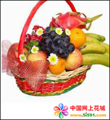| 材料包裝: | [材 料] 火龍果1個、紅蘋果2個、香橙2個、提子1串、香蕉1串、小花和多頭康乃馨點綴、配葉裝飾,紅絲帶 。(如某類水果此季節沒有,采用同價值水果代替)