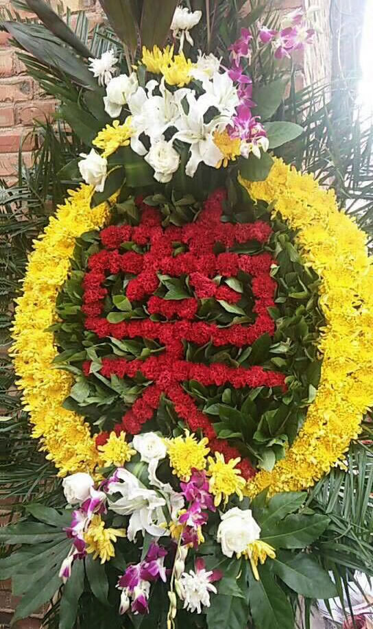 黃色菊花紅色康乃馨白玫瑰白百合搭配哀悼花圈