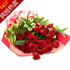[材 料]:紅玫瑰21支、蓬萊松、綠葉搭配。 [包 裝]:皺紋紙單面包裝。 [配送范圍]:本產(chǎn)品全國各地均可送達