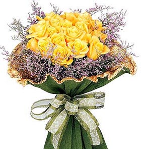 商品簡介:黃玫瑰16枝,情人草外圍飽滿, 卷邊布紋紙包裝。