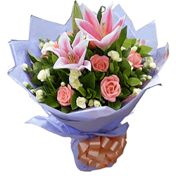 | 材料包裝: | [材 料]:9枝粉玫瑰,2枝粉百合,水仙百合,綠葉