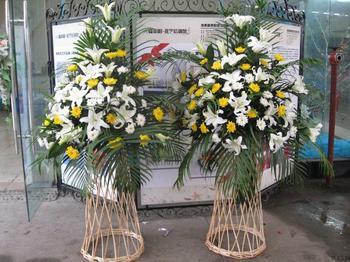 商品簡介:黃菊白菊白百合綠葉搭配1米6高單層花籃