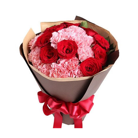 商品簡介:15個粉色康乃馨+9朵紅色玫瑰。
