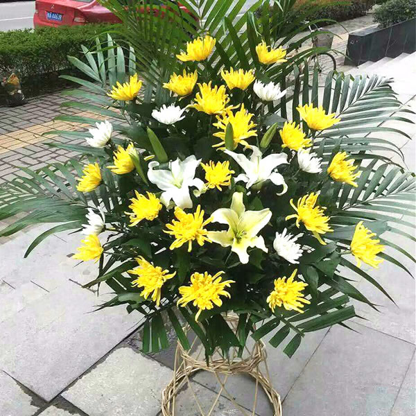 商品簡介:黃菊花白菊花白百合1米2喪事花籃