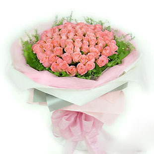 | 材料包裝: | 花材:77枝粉玫瑰,點綴配葉.