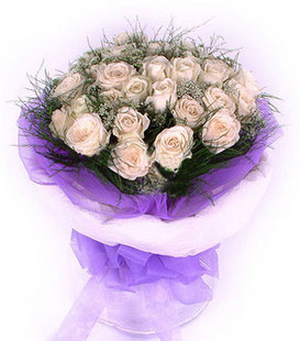 | 材料包裝: | 香檳玫瑰33支,蘆荀草點綴;蕾絲花、韓國紗網、大張皺紋紙配合圓形包裝,法式蝴蝶結束扎。