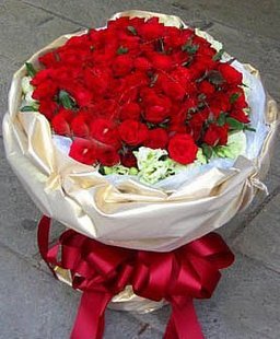 商品簡介:【鮮花花材】99支紅玫瑰 綠葉點綴。 【鮮花包裝】米黃色包裝紙平頭圓形包裝 紅色蝴蝶結