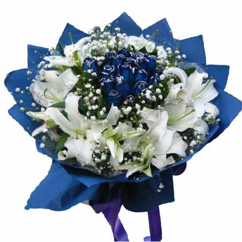| 材料包裝: | 「材 料」9枝白色香水百合,19枝藍色妖姬(國產)