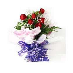 商品簡(jiǎn)介:「材 料」 紅玫瑰6枝 「包 裝」 粉色珠光紙及綿紙包裝,紫色絲帶法式結(jié)束扎