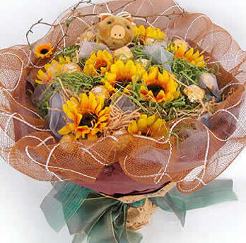 商品簡介: 「材 料」 向晶葵9枝,金莎巧克力9顆,小飾品一只; 「包 裝」 豪華港式包裝;