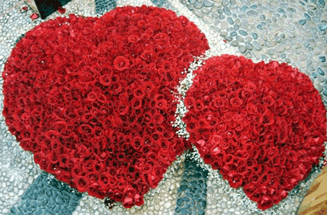 「材 料」 999朵昆明A級紅玫瑰 「包 裝」 兩束心型玫瑰,想交.満天星外圍