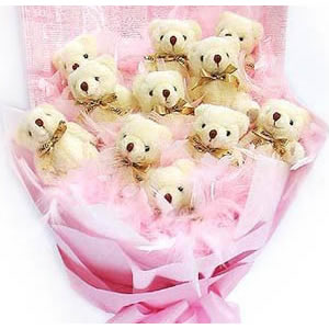 「材 料」 11只洋絨小熊,精美包裝,羽毛裝飾 「包 裝」 白色羽毛包裝