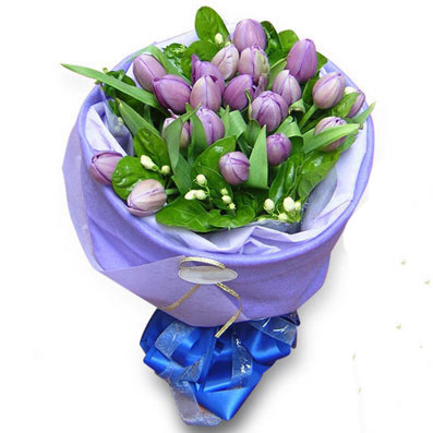 商品簡介: 「材 料」 紫色郁金香21枝 「包 裝」 藍色系包裝。