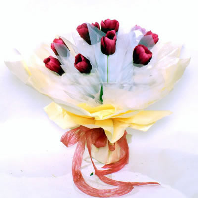 「材 料」 紅色郁金香13枝單枝玻璃紙包裝