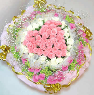 商品簡介: 「材  料」 粉,白,水蜜桃3色玫瑰66枝. 「包  裝」 心型包裝網紗滿天星圍襯.