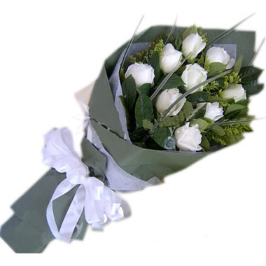 商品簡介:「材 料」 白玫瑰9支,綠葉豐滿 「包 裝」 墨綠色皺紋紙西式包裝,內(nèi)襯白色綿