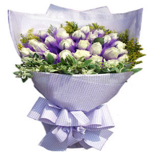 | 材料包裝: | 「材 料」 26支白玫瑰,加拿大黃鶯,葉上黃金搭配