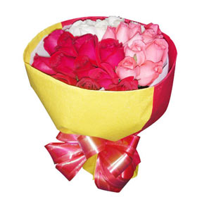 | 材料包裝: | 「材 料」 紅、白、粉色玫瑰各11支,共33支玫瑰,加配花