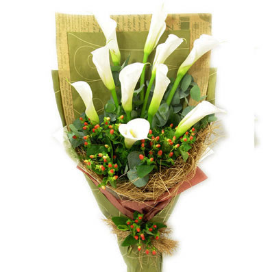 「材 料」 馬蹄蓮10枝,火龍珠點綴 「包 裝」 港式包裝