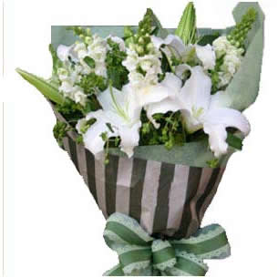 「材 料」 5支白色百合 「包 裝」 高檔包裝紙包裝