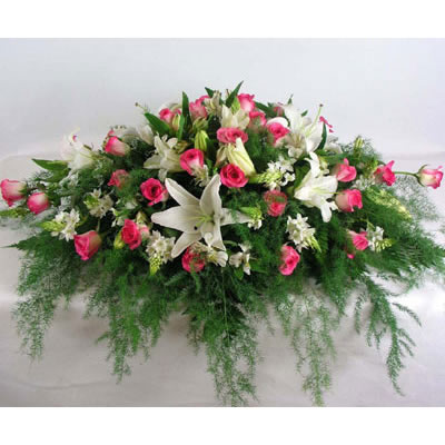 「材 料」 百合、玫瑰、金魚草為主,綠葉、綠草裝飾