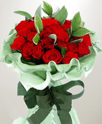 材料包裝: 「材  料」 29支紅玫瑰,外圍綠葉 「包  裝」 青色裙邊紙