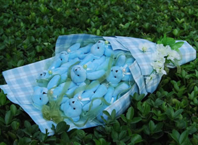 花材:8只藍色小熊。
