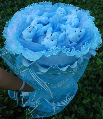 | 材料包裝: | 花材:5只藍色卡通小熊。