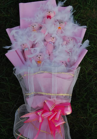 | 材料包裝: | 花材:8只粉色小熊。