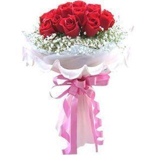 9支紅玫瑰圓形包裝滿天星圍邊粉色卷邊紙包裝