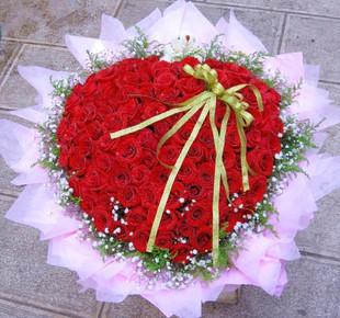花材:99支紅玫瑰,滿天星黃鶯搭配 包裝:淡粉色精美包裝,蝴蝶結結扎