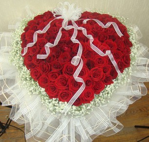 材料包裝: 99支紅玫瑰,滿天星尾巴 網(wǎng)紗包裝