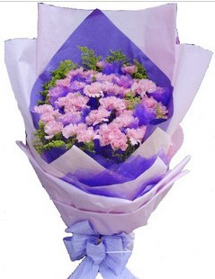 19支粉色康乃馨,黃鶯豐滿,單面包裝