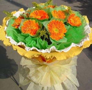 材料包裝: 11支桔色扶郎花,圓形包裝
