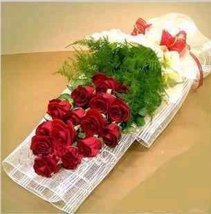 材料包裝: 花材:21只紅玫瑰,綠葉襯托,白色網紗單面包裝,蝴蝶結精美結扎