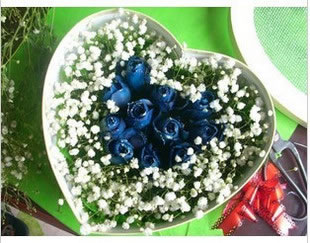 | 材料包裝: | [材 料]:花束, 12朵藍玫瑰,點綴滿天星.