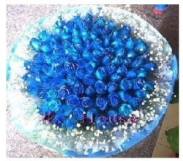 | 材料包裝: | 花 材: 99枝藍玫瑰(國產藍色妖姬品種),幸福草或高山積雪外圍。