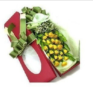 花束.22朵黃玫瑰,點綴綠葉. [包 裝]:精美禮盒包裝。
