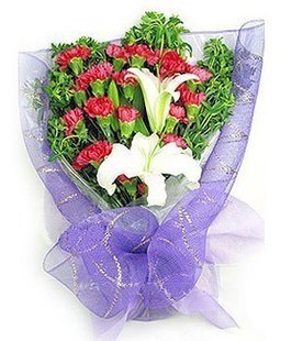 | 材料包裝: | 紅色康乃馨16枝,百合2朵