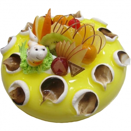相關知識:圓形奶油果醬蛋糕,時令水果裝飾,1只可愛小蛇。