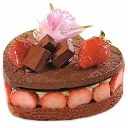 心形黑森林蛋糕,草莓片圍邊,2個草莓點綴(季節(jié)性水果,如缺貨,可用其他水果代替)