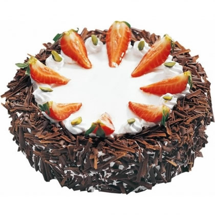 相關(guān)知識(shí):圓形黑森林蛋糕,白色奶油鋪面,草莓切片點(diǎn)綴(季節(jié)性水果,如缺貨,用其他水果代替)