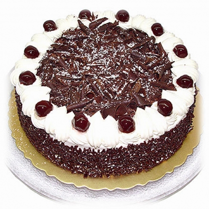 相關知識:圓形黑森林蛋糕,巧克力屑鋪面,白色奶油圍邊。