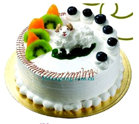 相關知識:圓形鮮奶蛋糕,時令水果裝飾,中間一只羊,造型獨特